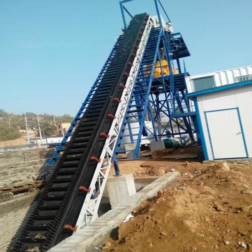 大傾角輸送機(jī)具有通用帶式輸送機(jī)結(jié)構(gòu)簡單,運行可靠,維修方便等優(yōu)點,并具有大傾角輸送、結(jié)構(gòu)緊湊、占地少等特點,因而是大傾角輸送和垂直提升物料的理想設(shè)備。